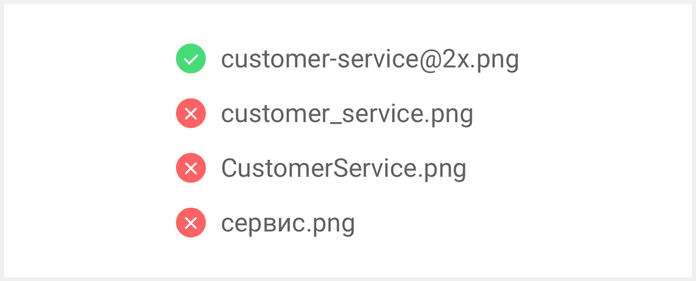 - Use @2x or @3x postfix to prepare images for devices with different pixel densities.