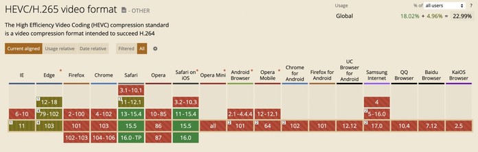 So, by clever combination of webm + VP9 and mp4 + H265 for our videos, we can achieve 94% global coverage.